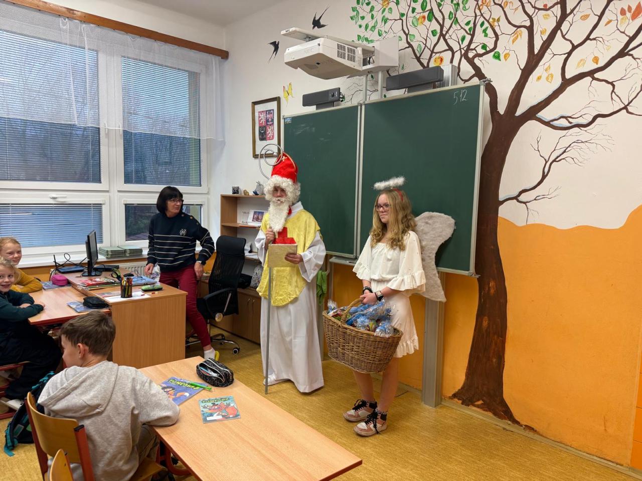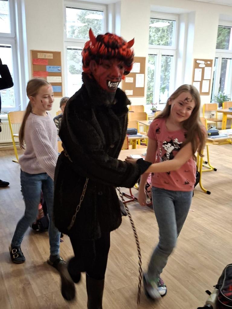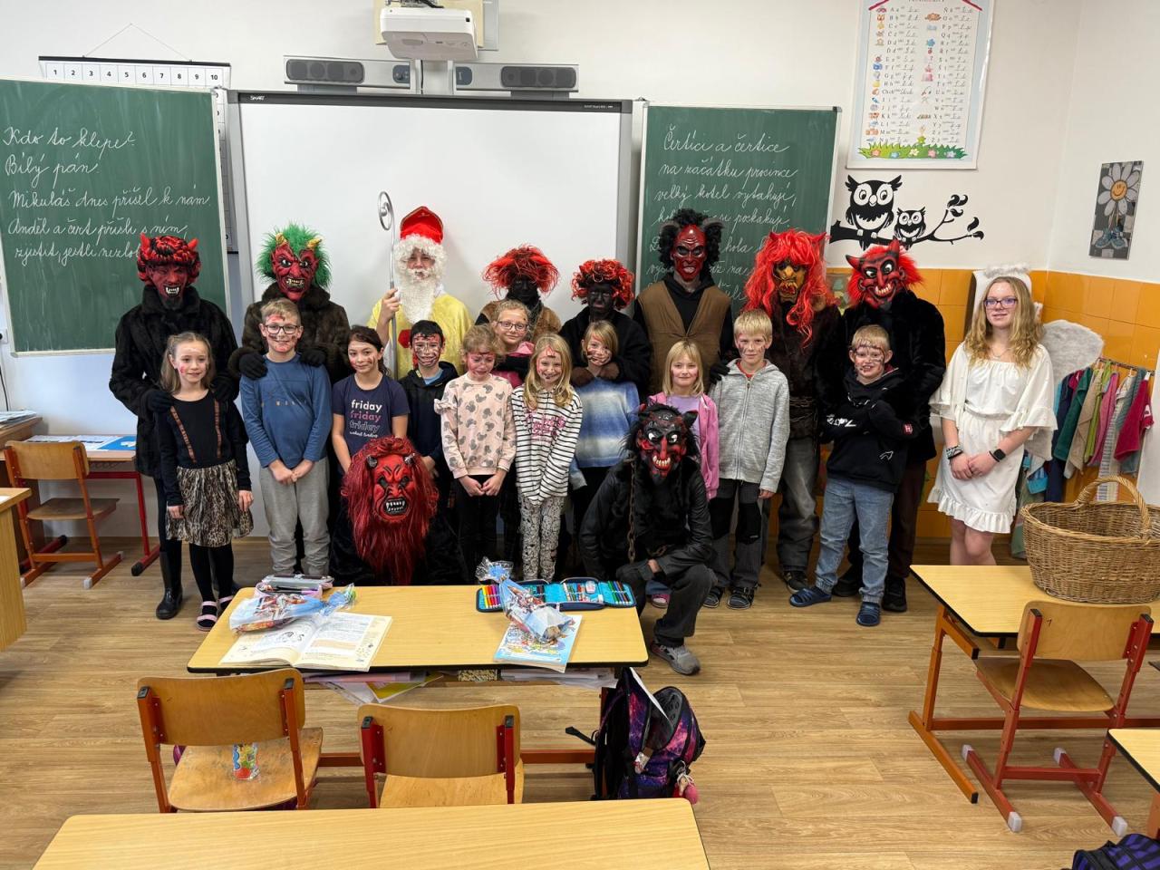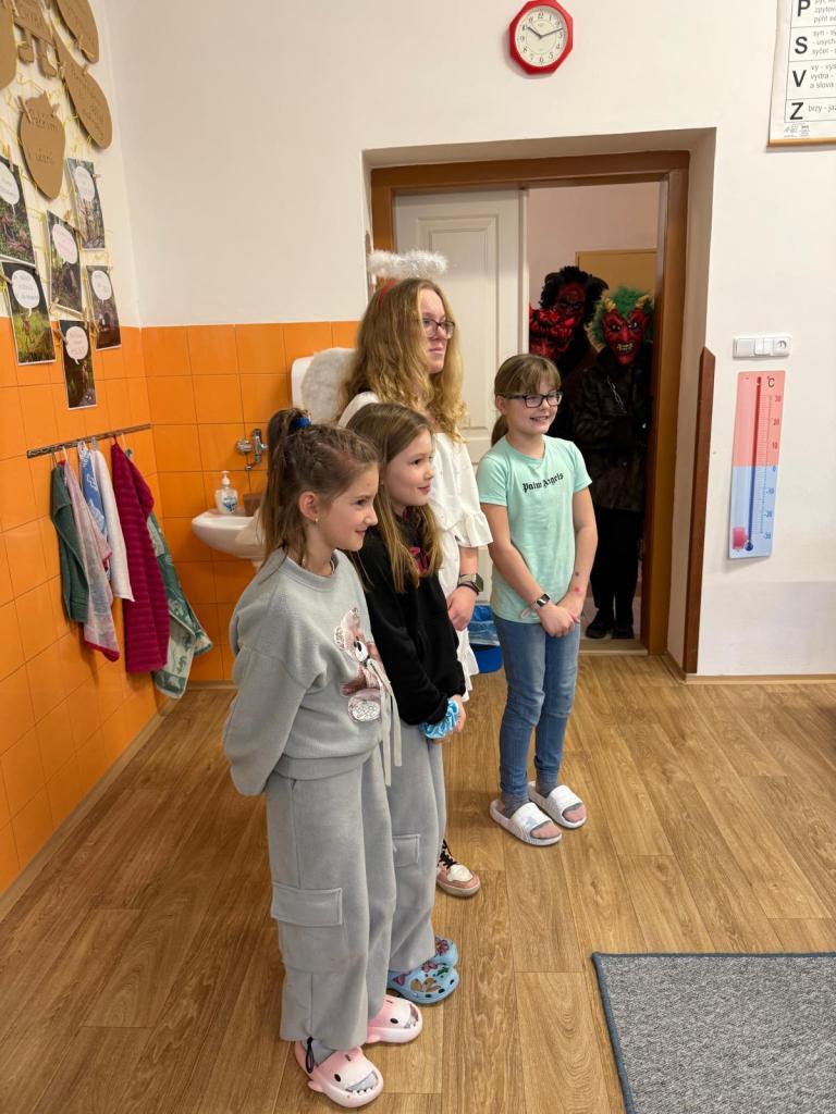 Do tříd zavítal nejen laskavý Mikuláš, ale také jeho doprovod - čerti s andělem. V ruce měli samozřejmě i knihu hříchů, do které se během roku zapsalo nejedno neposedné chování či drobné školní nepravosti. Čert občas významně zahučel, anděl zase každého chlácholil a Mikuláš s úsměvem rozhodoval, kdo si zaslouží pochvalu a komu připomenout, že je čas polepšit se.