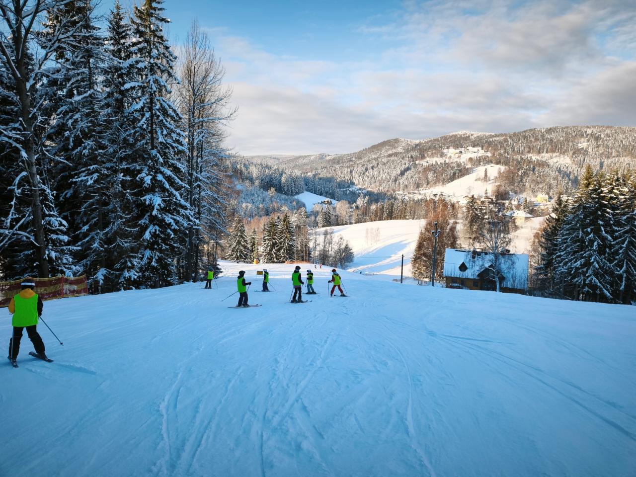 Ve dnech od 3. do 10. ledna 2026 se konal lyžařský kurz v Albrechticích na Tanvaldském Špičáku. Účastníci zažili mrazivé a slunečné počasí během výcviku na upravených sjezdovkách. Sníh byl ideální, což umožnilo postupné zlepšování lyžařských dovedností pod dohledem zkušených instruktorů. Kromě lyžování si žáci užili také výlet na běžkách k Mariánskohorským Boudám a Protržené přehradě. Ve středu, odpočinkovém dnu, proběhl výlet zasněženou krajinou s hrátky na sněhu, dále žáci navštívili restauraci na vrcholu Špičáku. Odpoledne byla naplánovaná exkurze na středisku horské služby s profesionálním výkladem a ukázkou vybavení a techniky. Závěr lyžování byl ve znamení vloček a zatažené oblohy. Radost a úsměvy přesto vydržely až do konce.Všichni si kurz užili, unavení, ale šťastní se vrátili s mnoha zážitky do svých domovů.