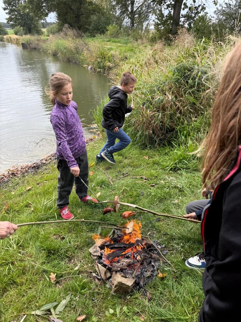 6. 10. 2025 jsme se sešli na prvním turistickém kroužku Počasí nám nakonec přálo a nepršelo. Na zahřátí jsme s dětmi u rybníka Plužinec udělali ohýnek a opekli si špekáčky. Těšíme se na další setkání.